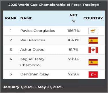En el Campeonato Mundial de Trading, me enfrento a un desafío de élite donde traders de todo el planeta competimos en los mercados.
