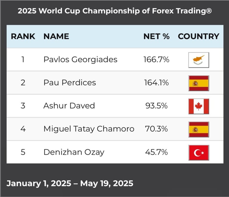 En el Campeonato Mundial de Trading, me enfrento a un desafío de élite donde traders de todo el planeta competimos en los mercados.